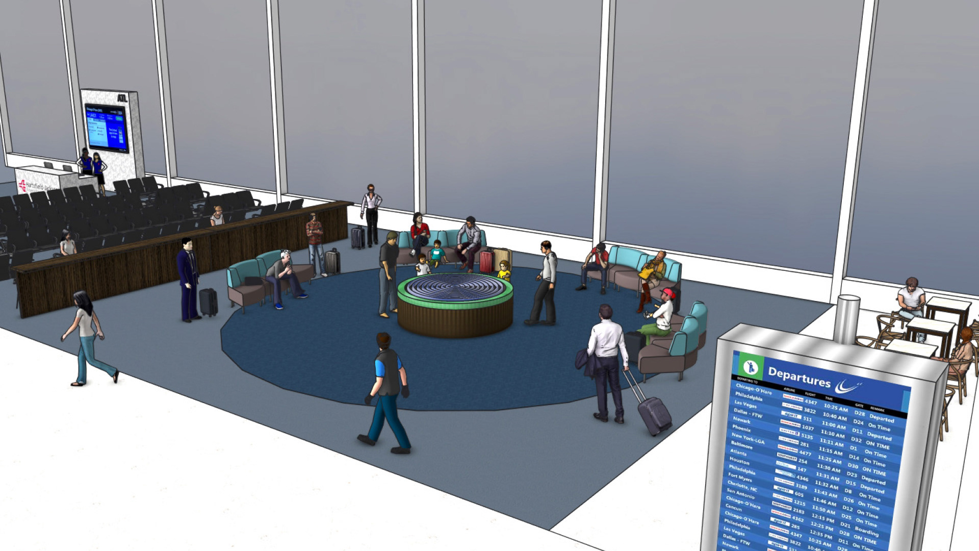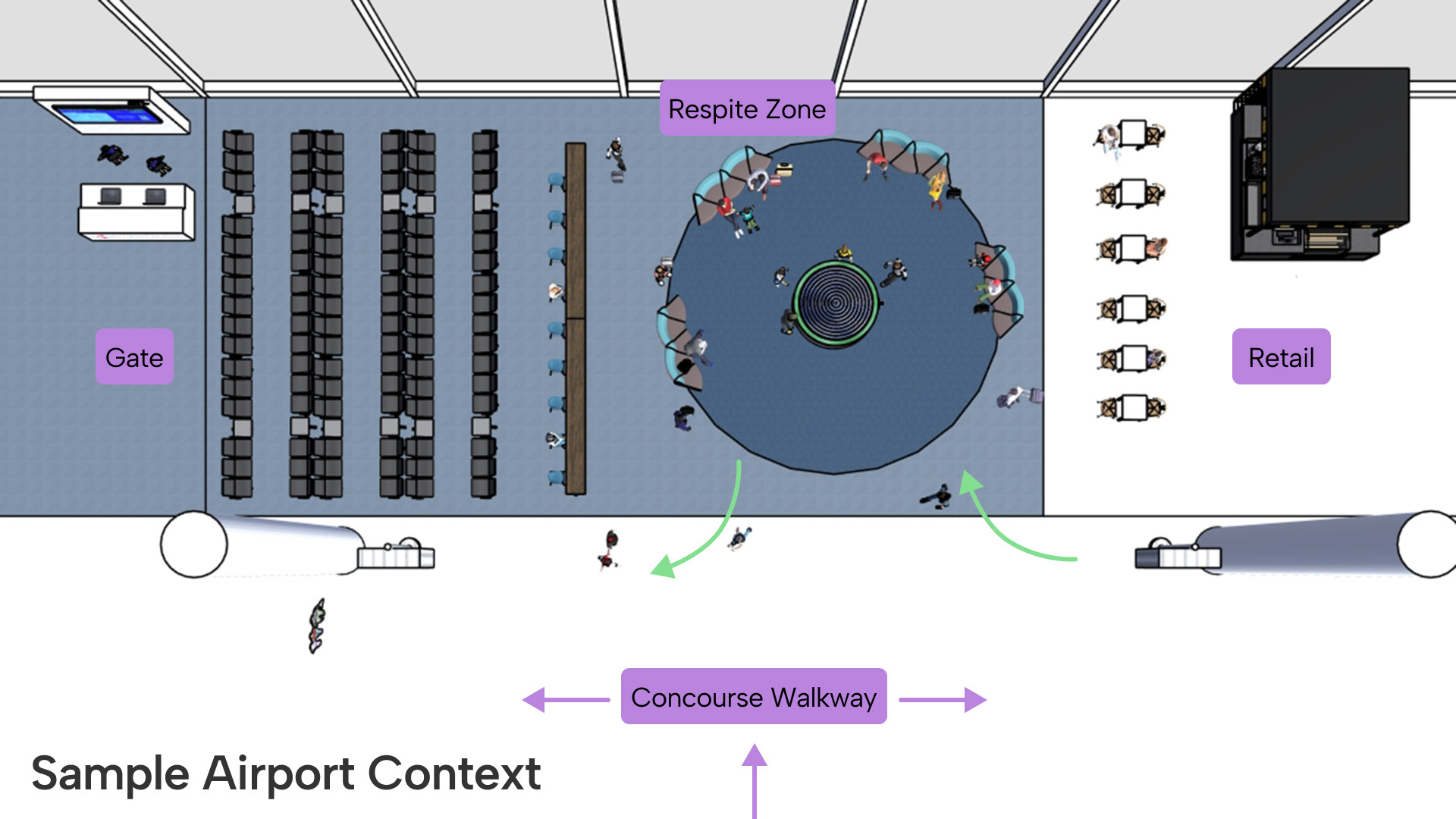 Ring of Respite is an interactive installation designed to provide a moment of escape and rest for travelers in airport concourses. This project explores the application of restoration theory in installation design and imbuing an installation with personality.